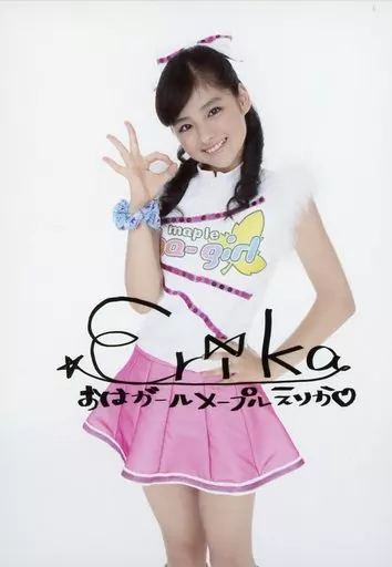 Japanese title: 生写真(女性)/アイドル/おはガールメープル おはガールメープル/田中絵里花/印刷サイン入り・膝上・衣装ピンク白・右手で丸・左手腰/「次世代ワールドホビーフェア」会場限定生写真
