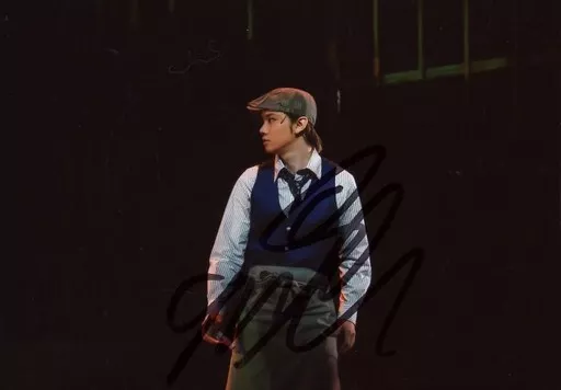Official photo (male) / actor ☆ Shinji Ryochi / with handwritten signature / Live Photo / Horizontal / Above the Knee / Costume Blue / Gray / Cap / Both Hands Down / Face Left Facing / Background Black / Official Official photo
