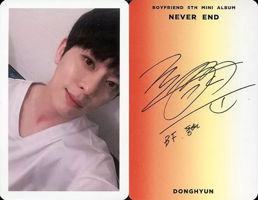 Japanese title: コレクションカード(男性)/CD「Never End」(DAY Ver.)初回限定封入特典フォトカード BOYFRIEND/DONGHYUN(ドンヒョン)/裏面オレンジ・印刷サイン入り/CD「Never End」(DAY Ver.)初回限定封入特典フォトカード