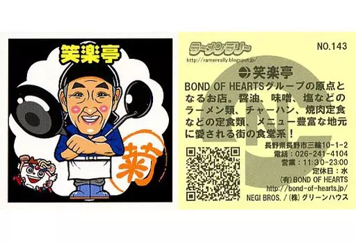 Japanese title: コレクションシール/ノーマル/ラーメンラリー 店員さんシール NO.143[ノーマル]:笑楽亭