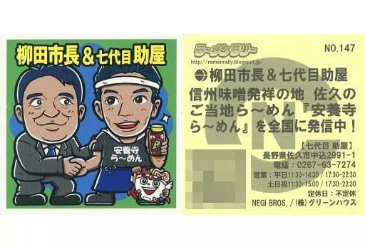 Japanese title: コレクションシール/ノーマル/ラーメンラリー 店員さんシール NO.147[ノーマル]:七代目助屋