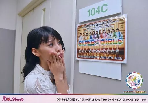Official photo (female) / idol / Super Girls Super Girls / Mirei Tanaka / Horizontal, Bust Up, White Costume, Both Cheeks, Right Eye, "June 25, 2016" / Super Girls Live Tour 2016 ~ SUPER ★ CASTLE ~