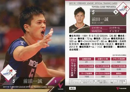 Japanese title: スポーツ/レギュラーカード/2017/18 V・プレミアリーグ男子公式トレーディングカード RG 23 [レギュラーカード] : 前田一誠