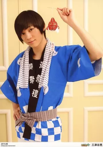 Japanese title: 生写真(男性)/俳優/D2 D2/三津谷亮/膝上・衣装青・白・法被・首に手ぬぐい・右手腰・左手飾り・「2015.08」・2Lサイズ/D-BOYSオフィシャルブロマイドW~夏の過ごし方~