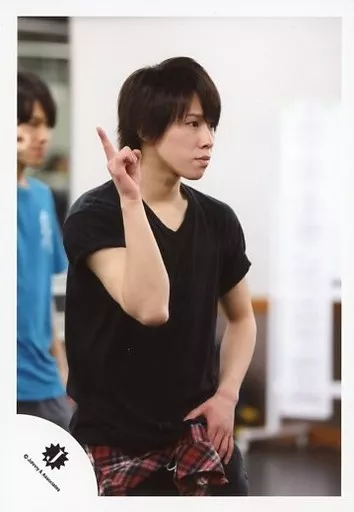 Japanese title: 生写真(ジャニーズ)/アイドル/Snow Man Snow Man/宮舘涼太/上半身・衣装黒・右手人差し指立て・左手腰・目線右・背景白/ダンスレッスンオフショット(JW感謝祭)/公式生写真