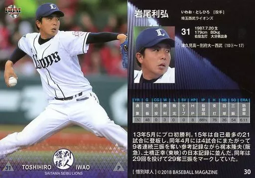 Japanese title: BBM/レギュラーカード/埼玉西武ライオンズ/BBM2018 惜別球人 30[レギュラーカード]:岩尾利弘