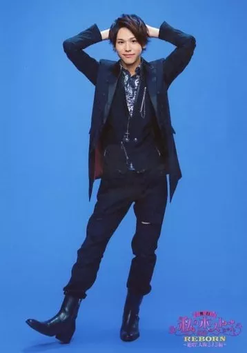 Japanese title: 生写真(男性)/俳優 三浦海里(湊人)/全身・背景青・キャラクターショット/舞台「私のホストちゃん REBORN ~絶唱!大阪ミナミ編~」個人生写真