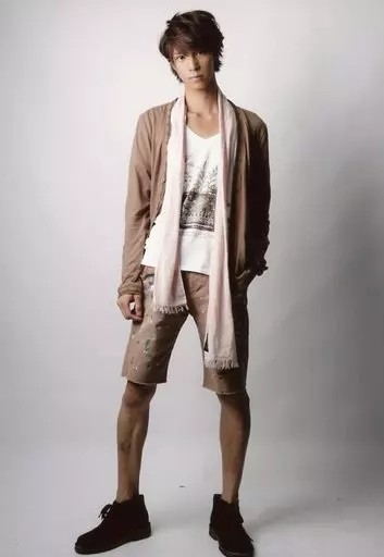 Japanese title: 生写真(男性)/俳優 浜尾京介/全身・衣装白・茶・マフラー・両手下げ・左手ポケット・背景グレー/「Boys Award Collection Show!!!」イベント会場限定生写真