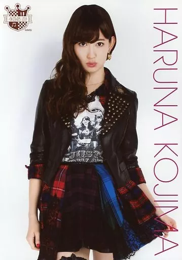 Haruna Kojima / Above the Knees, Costume Black, Blue, Red, Check Pattern / AKB48 CAFE & SHOP Limited A4 Size Official photo Poster No. 38