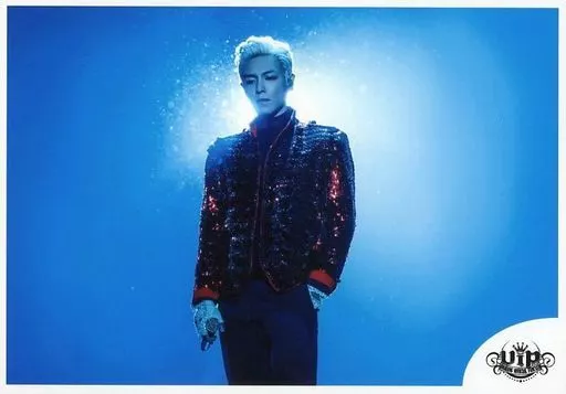 Japanese title: 生写真(男性)/アイドル/BIGBANG BIGBANG/T.O.P(トップ)/ライブフォト・横型・膝上・衣装赤・右手マイク・左手ポケット・目線左下・背景青・ライト・逆光・ロゴ「VIP」/a-nation FC会員限定生写真