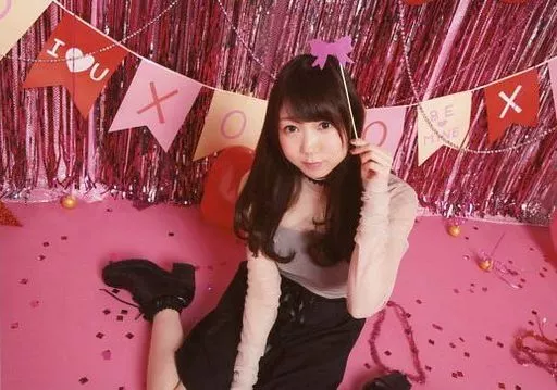 Japanese title: 生写真(女性)/声優/i☆Ris i☆Ris/山北早紀/横型・膝上・座り・衣装ピンクベージュ・黒・左手棒・背景赤ピンク・床/『i☆Ris&Wake Up, Girls!バレンタインLIVE!! 2018』バレンタインブロマイド(i☆Ris)