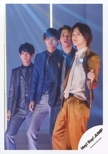 Japanese title: 生写真(ジャニーズ)/アイドル/Hey! Say! JUMP Hey! Say! JUMP/集合(4人)/膝上・衣装キャメル紺グレー・岡本左手でジャケット広げる/「マエヲムケ」PV&ジャケ写撮影オフショット/公式生写真