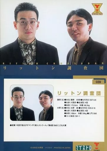 Japanese title: コレクションカード(男性)/吉本興業公認カード 039:リットン調査団/藤原光博・水野透/レギュラーカード(タレントカード)/吉本興業公認カード