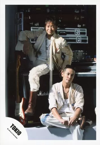 Japanese title: 生写真(ジャニーズ)/アイドル/TOKIO TOKIO/城島茂・松岡昌宏/全身・座り・衣装白・口閉じ・城島右足立て/公式生写真