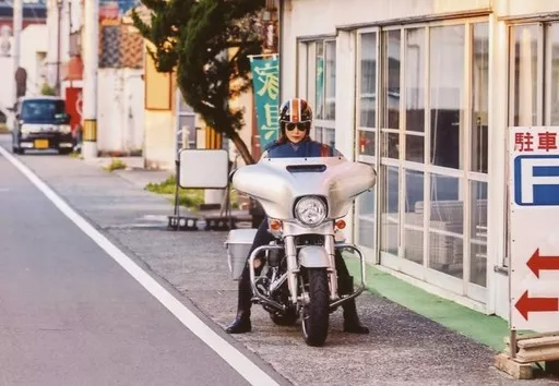 Okakan Harley / horizontal, full-body, motorcycle, sunglasses, helmet / film "Dear Girl ~ Stories ~ THE MOVIE3 the United Kingdom of KOCHI Rokunin no Ryoma" UKK Omoshiro Trading Bromide first part