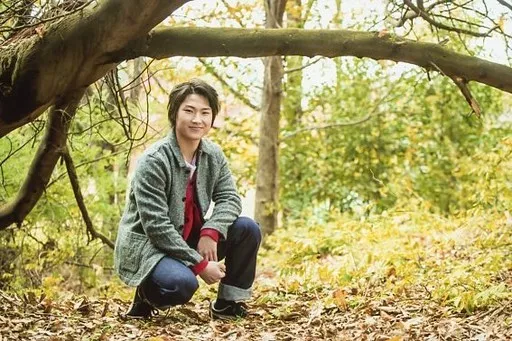 Japanese title: 生写真(男性)/俳優 中内天摩/横型・全身・衣装グレー・赤・しゃがみ・右向き・カメラ目線・野外・ポストカードサイズ/ブルーシャトルプロデュース「新選組」 くじ写真 第1弾 森男子くじ