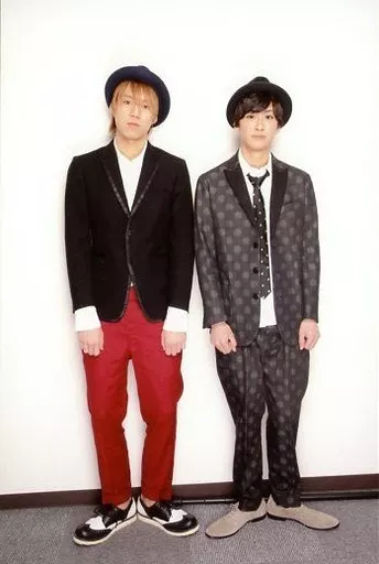 Japanese title: 生写真(男性)/俳優 赤澤燈・伊勢大貴/全身・衣装黒赤グレー・帽子・両手下・踵揃え・横並び/「ともるくん&イセダイ バレンタイン トークライブ」ブロマイド