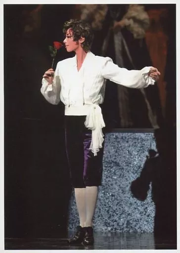 Takarazuka Revue (Hanagumi) / Rio Asukaumi / Live photo, whole body, 白紫 costume, rose in one hand, 2L size / Hanagumi grand theater performance "Po-no Ichizoku" stage photo