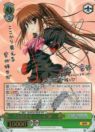 Japanese title: ヴァイスシュヴァルツ/SSP/キャラ/エクストラブースター ダ・カーポ VS リトルバスターズ! LB/WE30-28SSP[SSP]:(ホロ)“大好きなところ”鈴(たみやすともえ虹箔押しサイン入り)