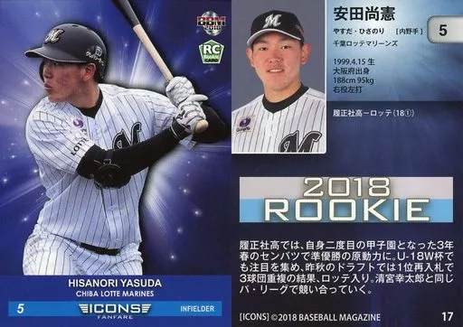 Japanese title: BBM/レギュラーカード/千葉ロッテマリーンズ/BBM2018 ICONS -FANFARE- 17[レギュラーカード]:安田尚憲