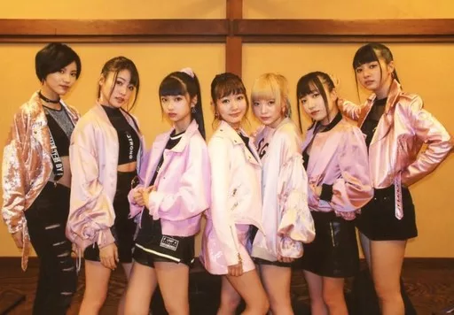 Official photo (female) / idol / Yumemiru Adolescence Yumemiru Adolescence / Set (7 People) / Horizontal, Above the Knees, Costume Pink Black, Center Ogino, Yamaguchi Right Hand Wall, Left Hand Back, Background Beige Orange / "ULTRA YUMELIVE! 2018" Retail Sale Official photo