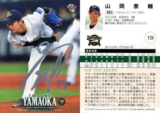 BBM / Regular Card / Orix Buffaloes / BBM2018 Baseball Card 1 st Version 083 [Regular Card] : Taisuke Yamaoka (silver foil-pressed with signature)