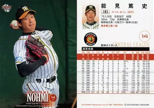 BBM / Regular Card / Hanshin Tigers / BBM2018 Baseball Card 1 st Version 191 [Regular Card] : Atsushi Nomi