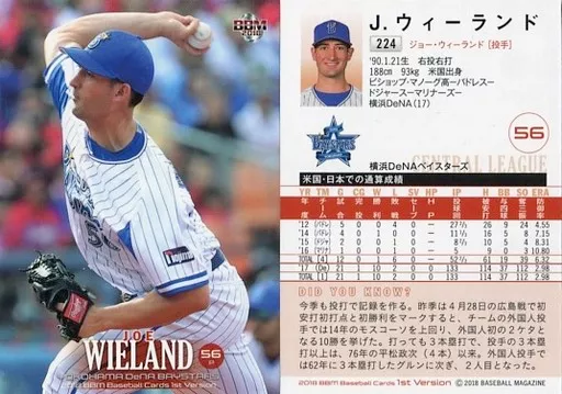 BBM / Regular Card / Yokohama DeNA BayStars / BBM2018 Baseball Card 1 st Version 224 [Regular Card] : J. Wieland