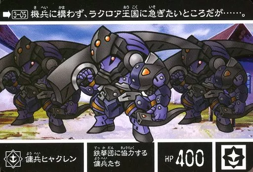 Japanese title: アニメ系トレカ/ノーマル/新約SDガンダム外伝 新世聖誕伝説 紅き月光と皇子の鎧 3-05[ノーマル]:傭兵ヒャクレン