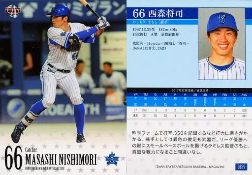 BBM / Regular Card / BBM2018 Yokohama DeNA BayStars DB39 [Regular Card] : Masashi Nishimori
