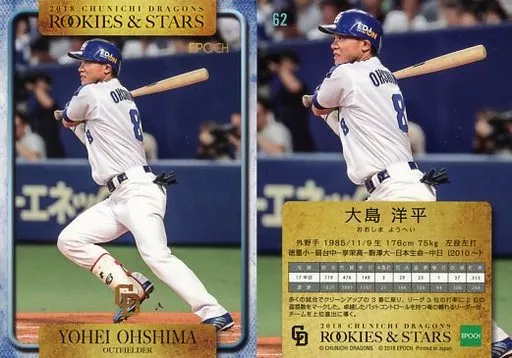 Japanese title: スポーツ/レギュラーカード/2018 中日ドラゴンズ ROOKIES&STARS 62[レギュラーカード]:大島洋平(No.青字)