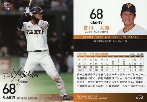Japanese title: BBM/レギュラーカード/BBM2018 読売ジャイアンツ G53[レギュラーカード]:吉川大幾