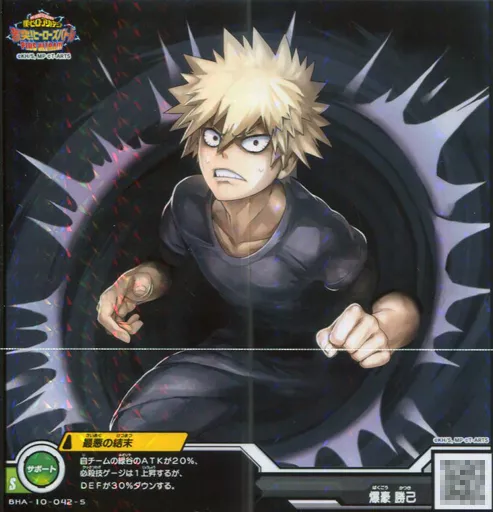 分類:サポートカード/レア度:Sシリーズ:PU2弾商品解説■アニメ「僕のヒーローアカデミア」のアミューズメントゲーム『ヒーローズバトル』略して『ヒロバト』