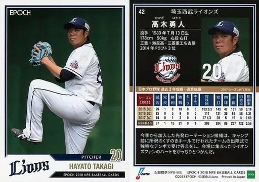 Japanese title: スポーツ/レギュラーカード/埼玉西武ライオンズ/EPOCH 2018 NPB プロ野球カード 42 [レギュラーカード] : 高木勇人
