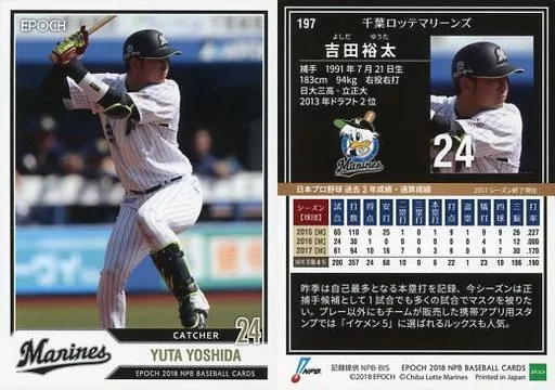 Sports / Regular Card / Chiba Lotte Marines / EPOCH 2018 NPB Professional Baseball Card 197 [Regular Card] : Ta Yutaka Yoshida