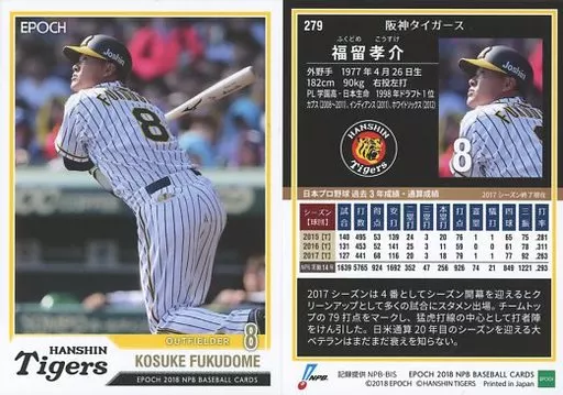 Japanese title: スポーツ/レギュラーカード/阪神タイガース/EPOCH 2018 NPB プロ野球カード 279 [レギュラーカード] : 福留孝介
