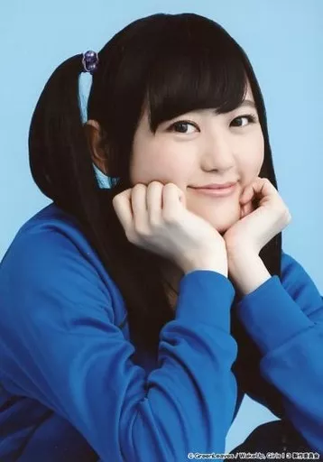 Japanese title: 生写真(女性)/声優/Wake Up, Girls! Wake Up, Girls!/高木美佑(岡本未夕)/バストアップ・衣装青・右向き・両手顎・背景青・キャラクターショット/舞台『Wake Up, Girls!青葉の軌跡』ランダムブロマイド