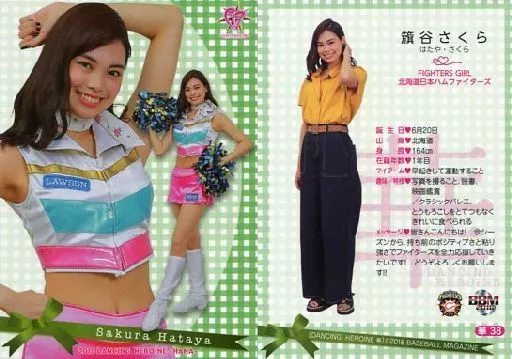 Japanese title: BBM/レギュラーカード/-/FIGHTERS GIRL/BBM2018 プロ野球チアリーダーカード DANCING HEROINE -華- 華38[レギュラーカード]:籏谷さくら
