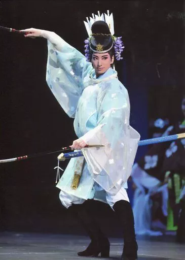 Japanese title: 生写真(女性)/宝塚歌劇団(花組)/女優 宝塚歌劇団(花組)/柚香光/ライブフォト・全身・白水色衣装・両手に小道具持ち・2Lサイズ/花組博多座公演「あかねさす紫の花」「Sante!!」役替わり舞台写真