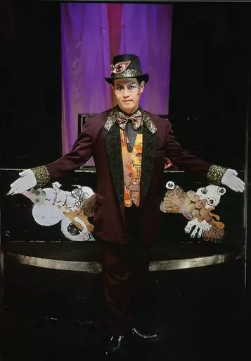Japanese title: 生写真(男性)/俳優 常川博行(ドン・ギンバイカ)/ライブフォト・全身・衣装茶色.黒.黄色・両手広げ・帽子/虚飾集団 廻天百眼『冥婚ゲシュタルト』生写真