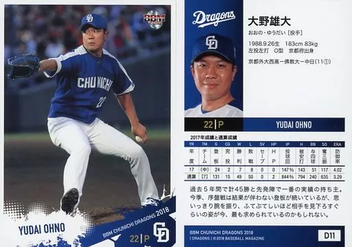 BBM / Regular Card / BBM2018 Chunichi Dragons D11 [Regular Card] : Yudai Ohno