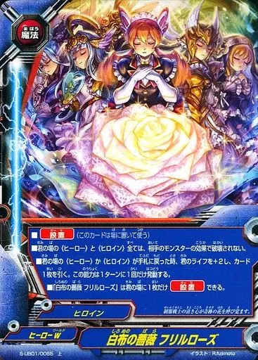 Japanese title: バディファイト/上/魔法/ヒーローW/[BF-S-UB01]神バディファイトアルティメットブースター第1弾「スーパー大戦Ω 来たぞ!ボクらのコスモマン」 S-UB01/0055[上]:白布の薔薇 フリルローズ