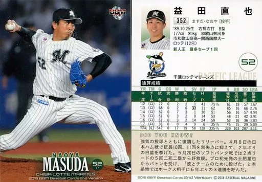 Japanese title: BBM/レギュラーカード/1st ver.アップデート版/千葉ロッテマリーンズ/BBM2018 ベースボールカード 2ndバージョン 352[レギュラーカード]:益田直也