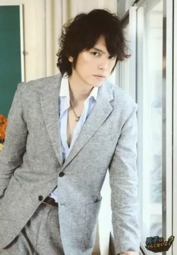 Japanese title: 生写真(男性)/俳優 村上幸平(上村先生)/膝上・衣装グレー・両手下・右半身引き・窓辺/舞台「男子はつらくないよ?」トレーディングブロマイド
