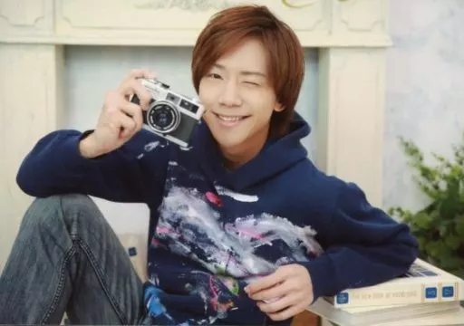 Japanese title: 生写真(男性)/俳優 椎名鯛造/横型・上半身・衣装青・パーカー・座り・右手カメラ・ウインク/「鯛造祭~黄金の右足~」生写真A