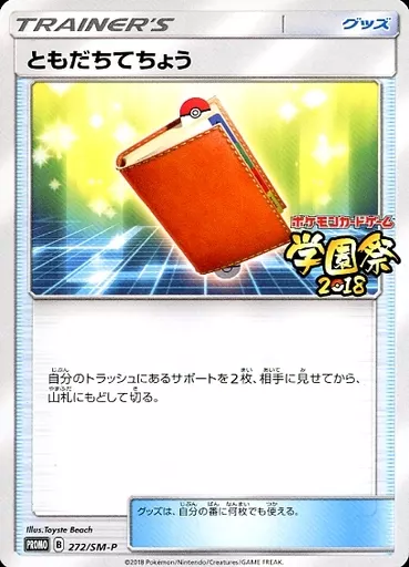 Japanese title: ポケモンカードゲーム/P/グッズ/ポケモンカードゲーム 学園祭2018 ティーチング参加賞 272/SM-P[P]:ともだちてちょう【学園祭2018ロゴ入り】