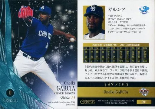 Japanese title: BBM/レギュラーカード/中日ドラゴンズ/BBM2018 ジェネシス 091[レギュラーカード]:ガルシア(青箔押しパラレル版)(/150)