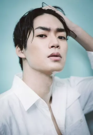 Otoko Gekidan Aoyama Omotesando X / Yuho Murakami / Bust-up / Costume White / Shirt / Background Light Blue / Otoko Gekidan Aoyama Omotesando X-Hataage Performance 『 SHIRO TORA ~ beyond the time ~ 』 Pamphlet Special Random Bromide
