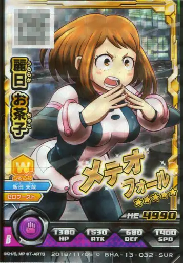 分類:バトルカード/レア度:SURシリーズ:PU5弾商品解説■アニメ「僕のヒーローアカデミア」のアミューズメントゲーム『ヒーローズバトル』略して『ヒロバト』