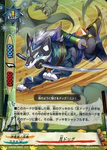 Japanese title: バディファイト/レア/モンスター/カタナW/[BF-S-BT02]神バディファイトブースターパック第2弾「異次元の侵略者」 S-BT02/0024[レア]:忍ドッグ(パラレル仕様)